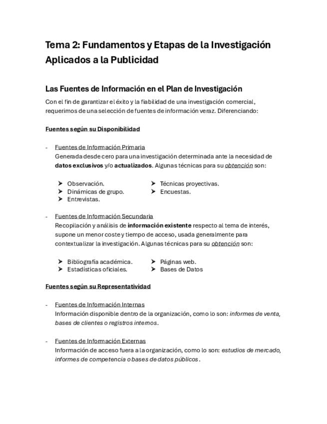 Investigación Publicitaria - Tema II: Fundamentos y Etapas de la Investigación Aplicados a la Publicidad