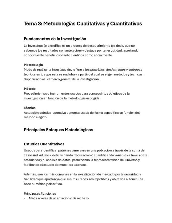 Investigación Publicitaria - Tema III: Metodologías Cualitativas y Cuantitativas