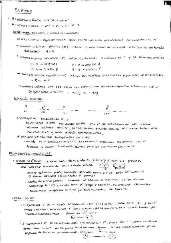 El átomo, orbitales y números cuánticos, propiedades periódicas, el enlace químico (geometría molecular, polaridad, hibridación)