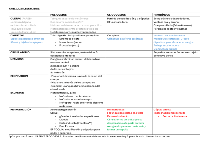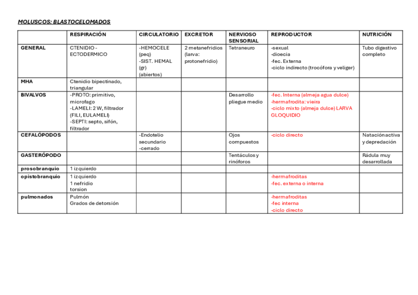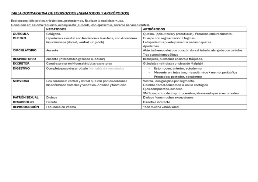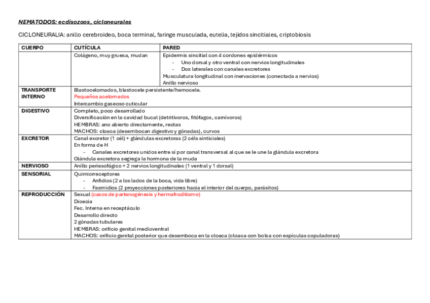 He publicado nuevos apuntes de 1º Zoología: TABLA RESUMEN Cuarto parcial 24/25