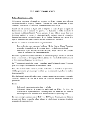 Atención al contexto de los medios en África (colonización) y las diferencia entre anglófonos y francófonos