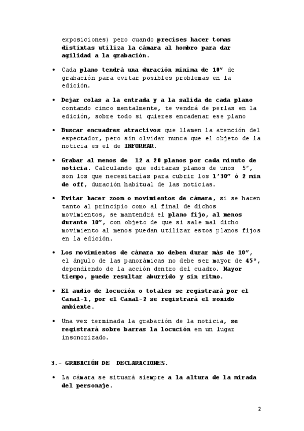 Algunos avisos con respecto al modo de grabar con la cámara para el trabajo final, lo que más puntúa