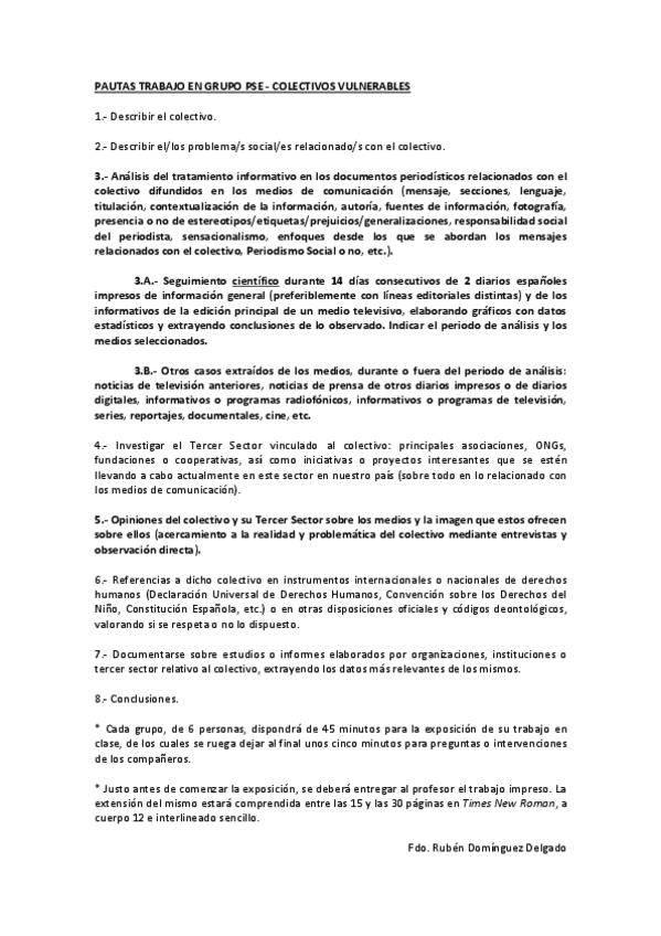 Pautas para el desarrollo del trabajo en grupo especificadas por el profesor