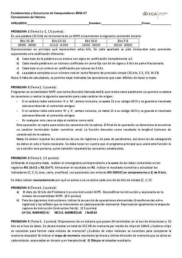 He publicado nuevos examenes de 1º Fundamentos de Estructura de Computadores: examen FEC Febrero 16-17 v2.pdf