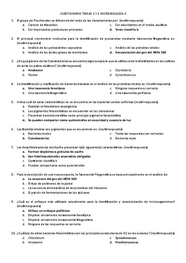 He publicado nuevos test de 3º Microbiología Ii: Diversidade Microbiana y Microbiología Aplicada: cuestionarios temas resueltos
