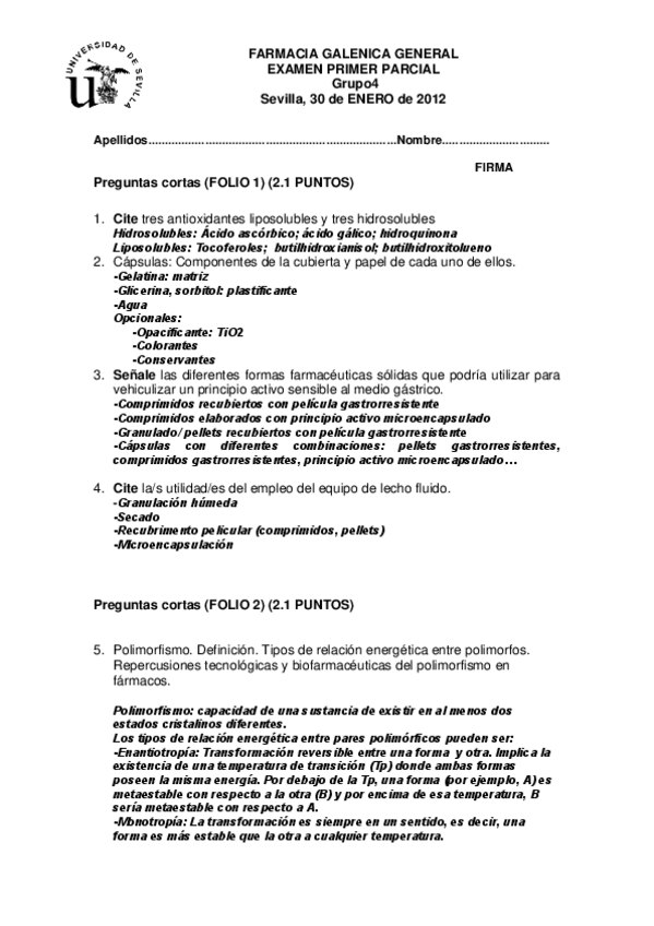 He publicado nuevos examenes de 4º Tecnología Farmacéutica II: 1 PARCIAL ENERO 2012.pdf