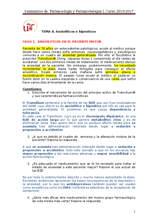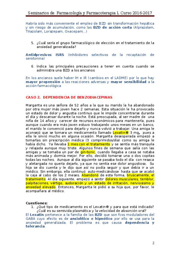 He publicado nuevos apuntes de 3º Farmacología y Farmacoterapia I: Seminario Ansiolíticos.docx