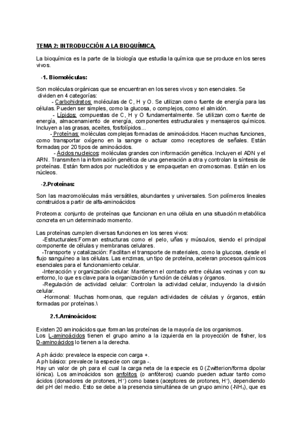 Apuntes de los temas de bioquímica I , sacado de sus diapositivas y completado información con lo que dice en clase.