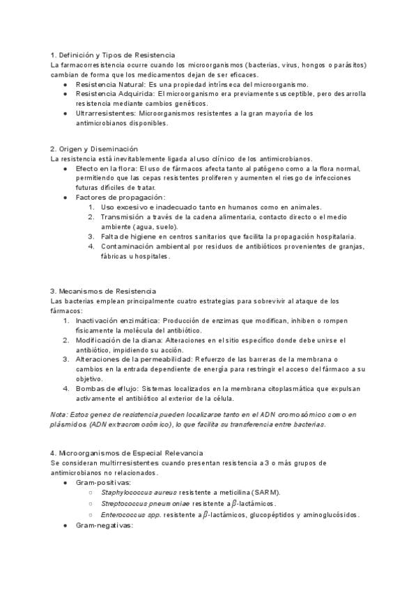 Esquema y apuntes de la resistencia a los antimicrobianos