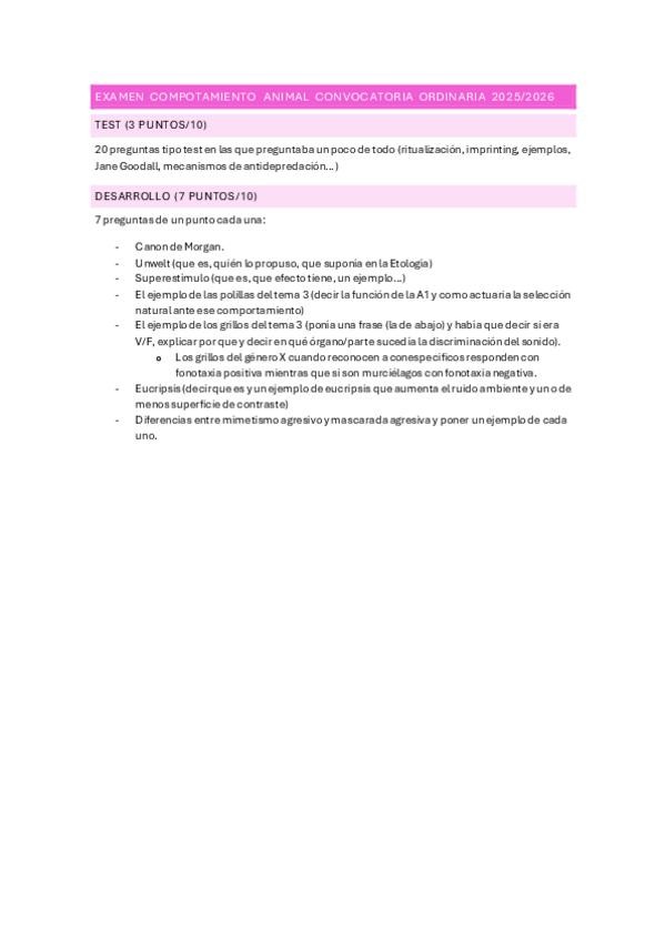 He publicado nuevos examenes de 4º COMPORTAMIENTO ANIMAL (ETOLOGÍA): EXAMEN-COMPOTAMIENTO-ANIMAL-CONVOCATORIA-ORDINARIA-2025.pdf