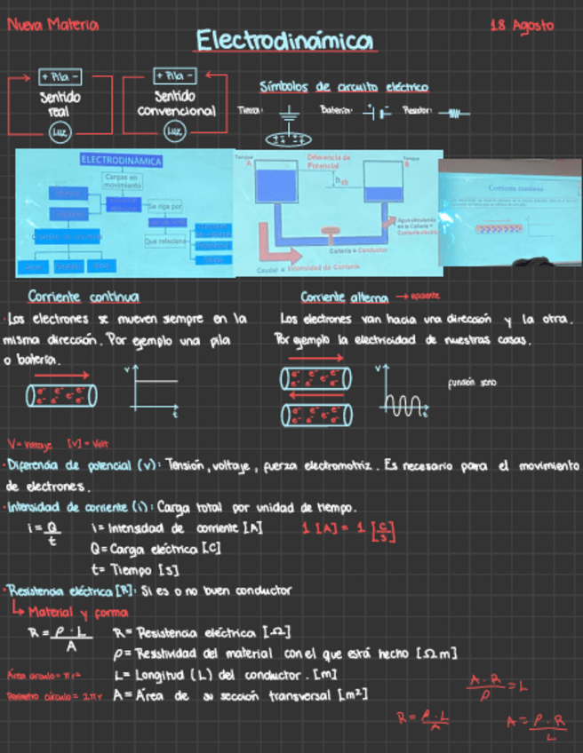 Materia, apuntes, fórmulas, resúmenes y ejercicios resueltos de Electrodinámica.