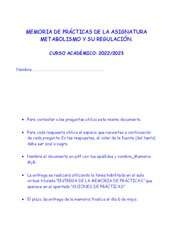 He publicado nuevos apuntes de 1º Metabolismo y su Regulación: MEMORIADEPRACTICASDELAASIGNATURAMETABOLISMOYSUREGULACION.pdf