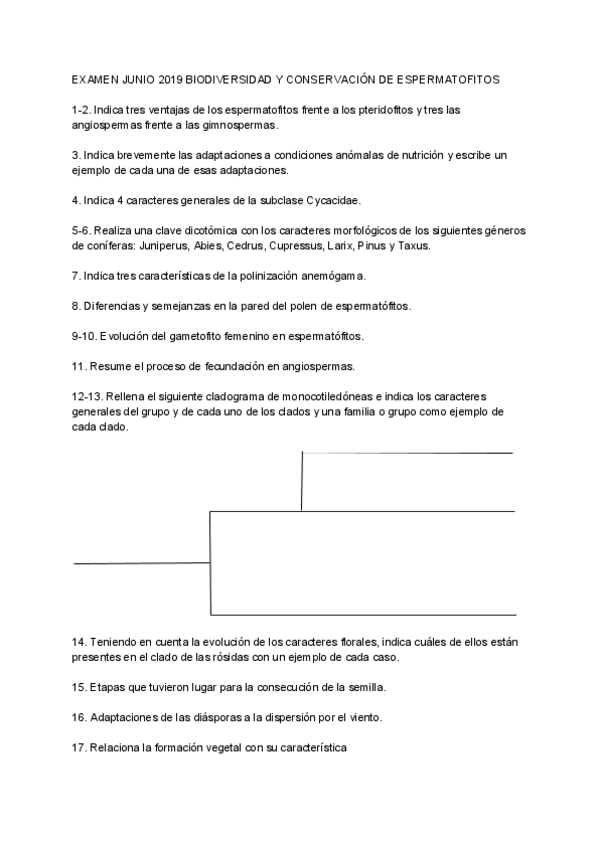He publicado nuevos examenes de 2º Biodiversidad y Conservación de Espermatófitos: EXAMEN-BIODIVERSIDAD-Y-CONSERVACION-DE-LOS-ESPERMATOFITOS.pdf