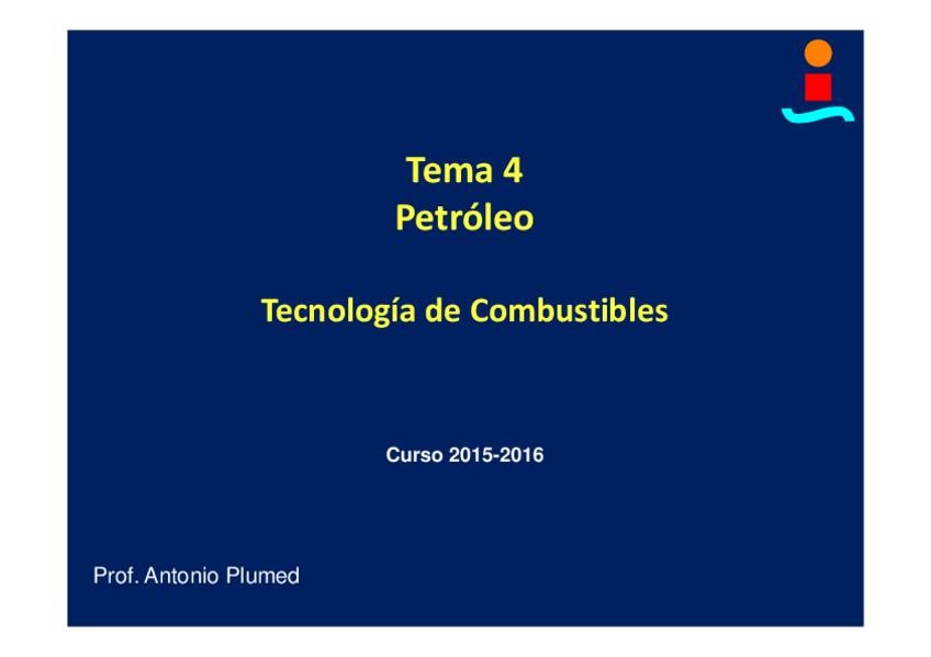 He publicado nuevos apuntes de 3º Tecnología de Combustibles: TECO 2016. TEMA 4. PETRÓLEO.pdf