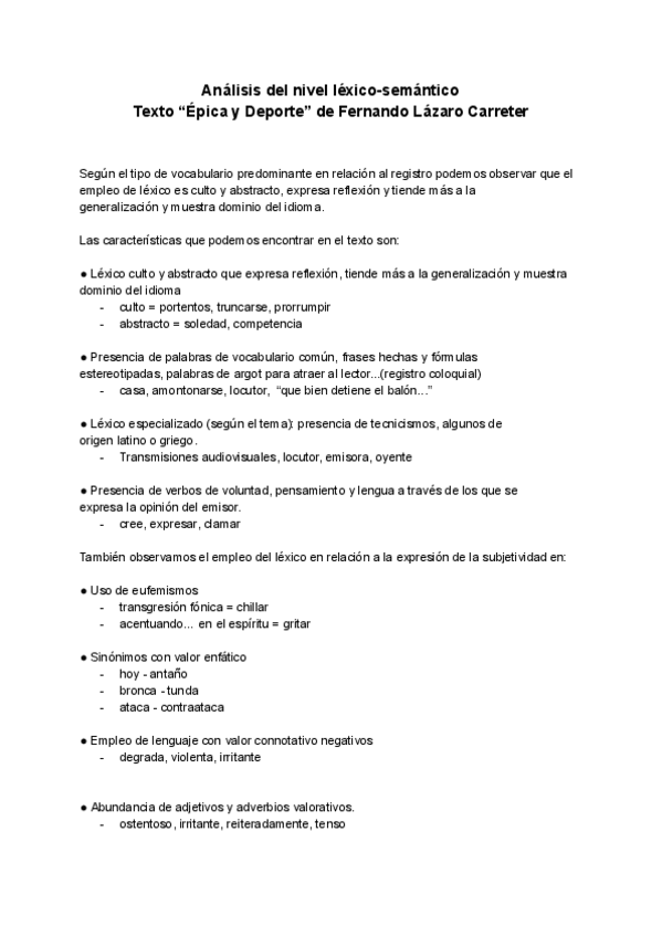 Análisis del nivel léxico-semántico