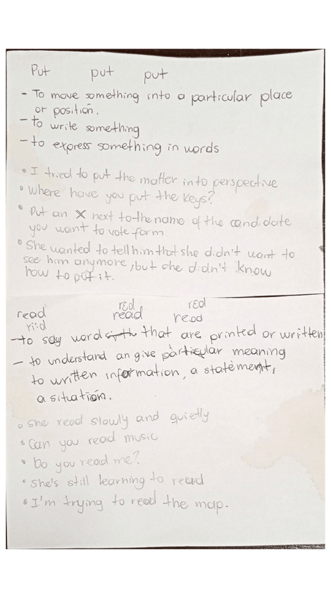 Verbos irregulares sus tres formas, definición en inglés a lapicero y ejemplos a lápiz