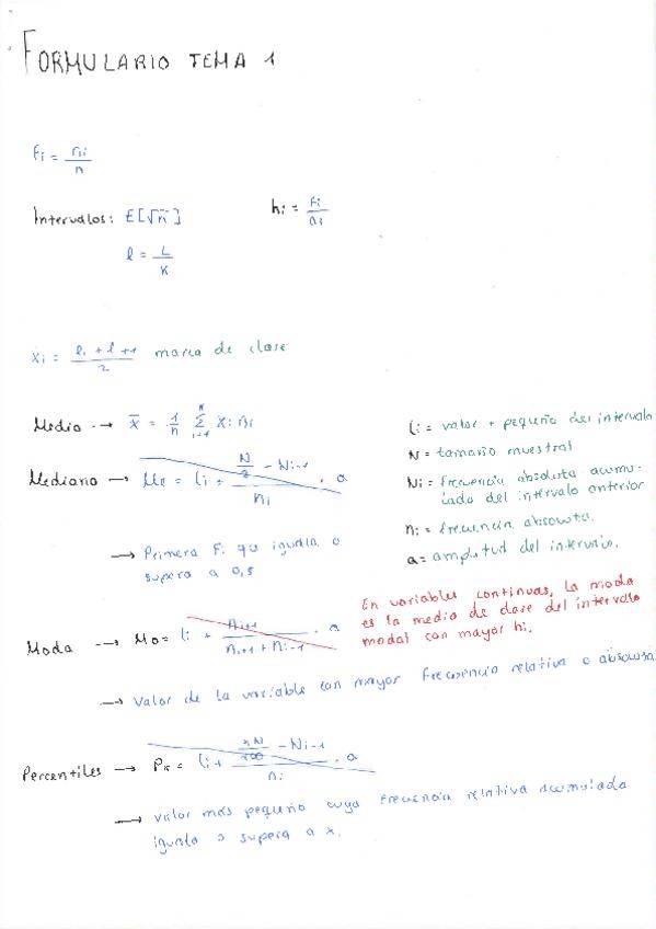 Formulario completo de estadística. Las fórmulas del tema 7 nos la dan en el examen, pero están en el documento de la teoría.
