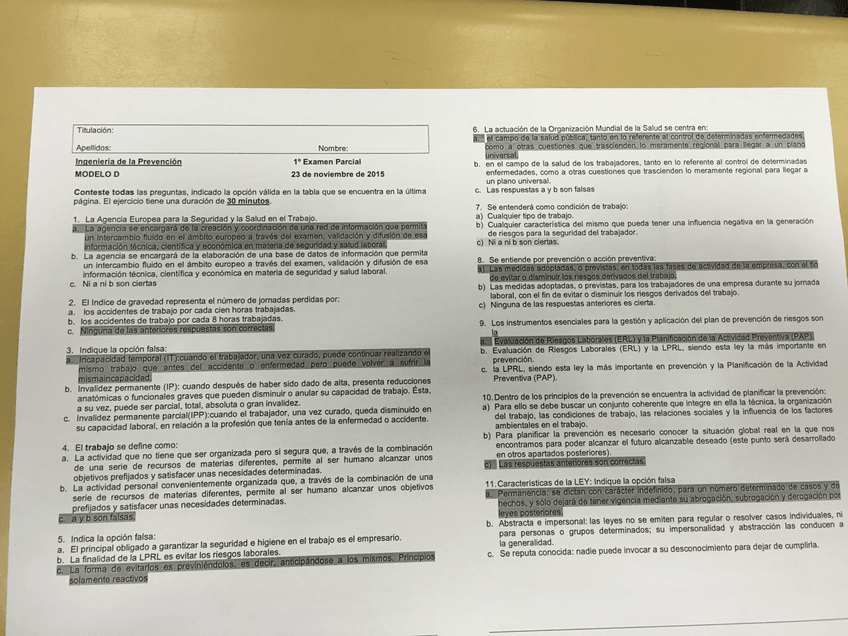 He publicado nuevos examenes de 4º Ingeniería de la Prevención de Riesgos Laborales: Examen test resuelto