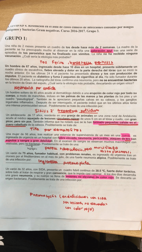 Casos clínicos hechos en clase, preguntas que caen en el examen