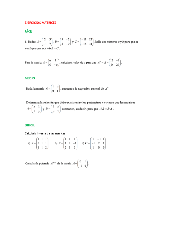 Matrices ejercicios resueltos