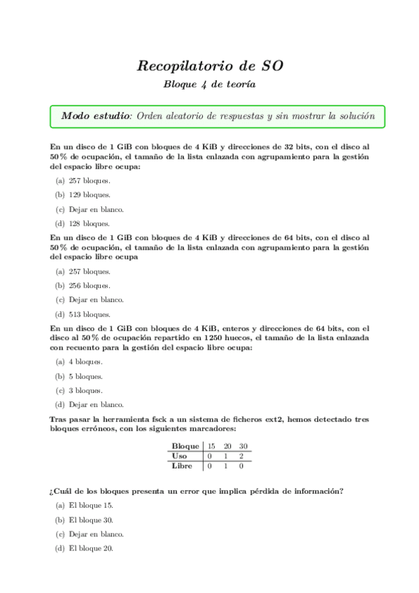 He publicado nuevos examenes de 2º Sistemas Operativos: Preguntas Bloque 4 de teoría (estudio)