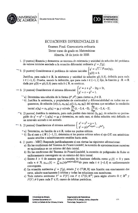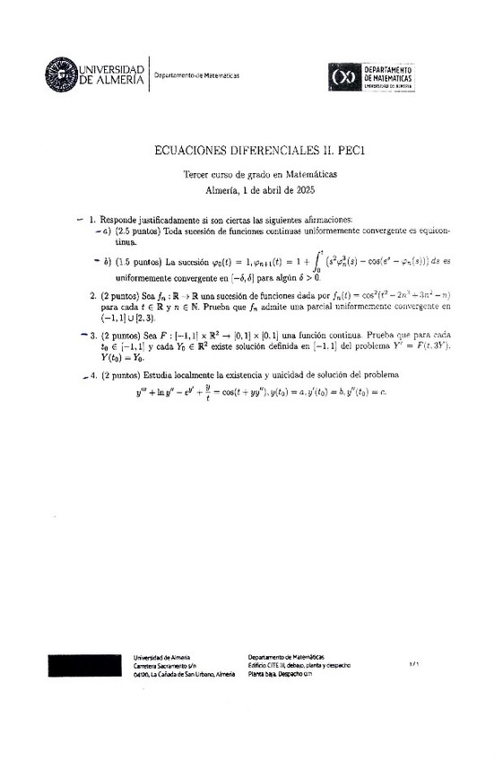 He publicado nuevos examenes de 3º Ecuaciones diferenciales II: Exámenes curso 24/25