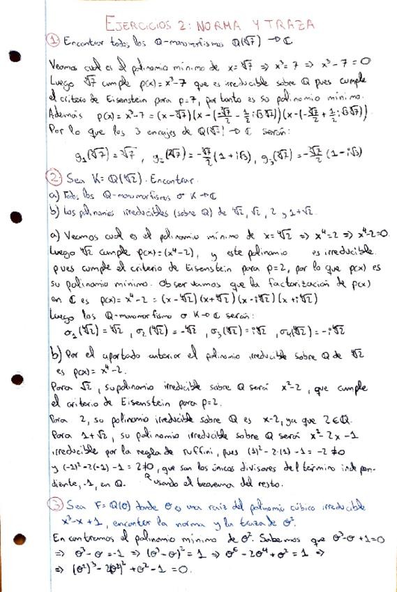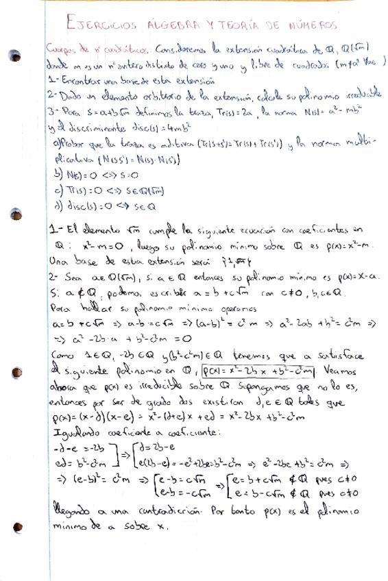 Ejercicios Álgebra y teoría de números
