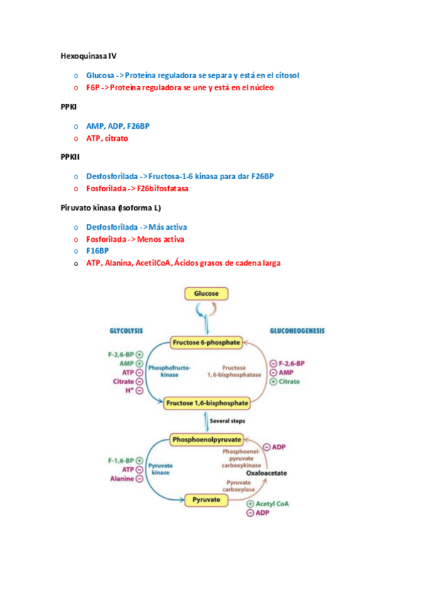 Resumen completo de rutas y qué metabolitos activan/inactivan cada enzima.