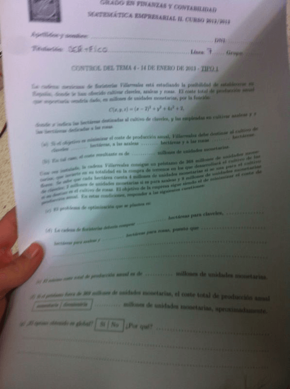 He publicado nuevos examenes de 1º Matemática Empresarial II: finales