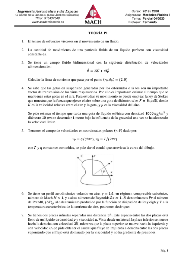 He publicado nuevos examenes de 2º Mecánica de Fluidos: FINAL 2020 RESUELTO ACADEMIA