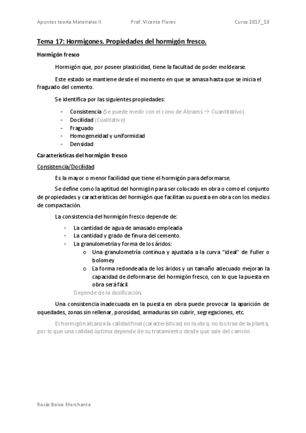 He publicado nuevos apuntes de 2º Materiales II: Tema 17 - Hormigones. Propiedades del hormigón fresco.pdf