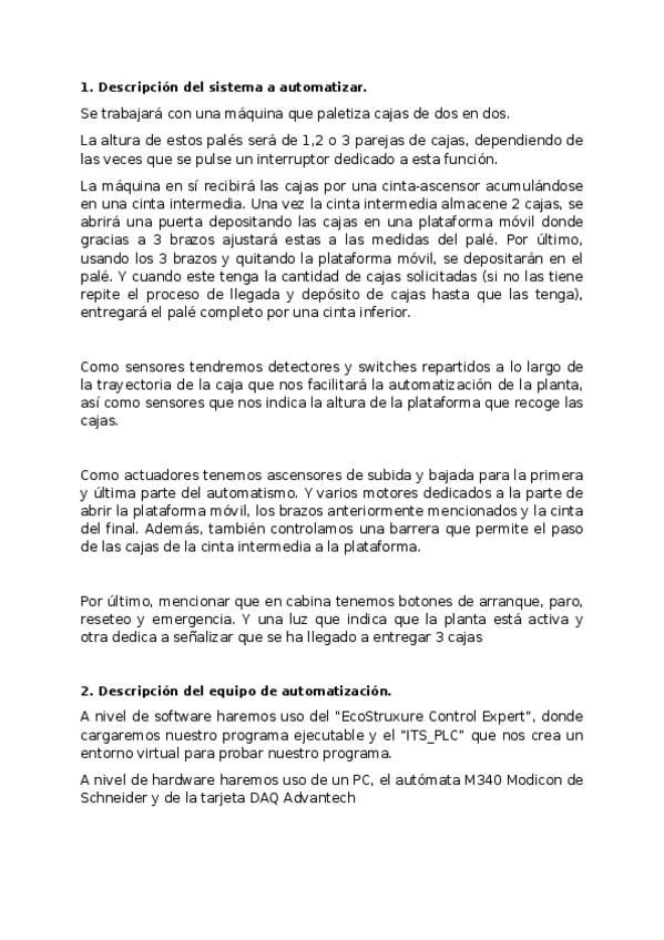 Memoria de la practica 4, necesaria para poder acceder al taller. Está completita la verdad. Se entrega también el código de codesys que se uso para comprobar que funcionaba correctamente el mecanismo pedido