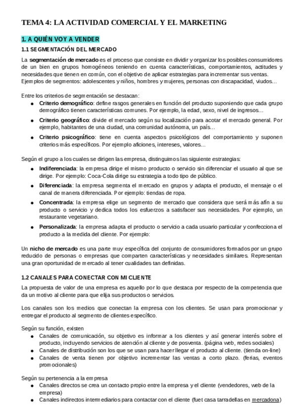 Segmentación del mercado Canales para conectar con el cliente Obtener información del cliente El marketing - Estrategias relacionadas con el producto - Estrategias relacionadas con el precio - Estrategias relacionadas con la promoción o comunicación