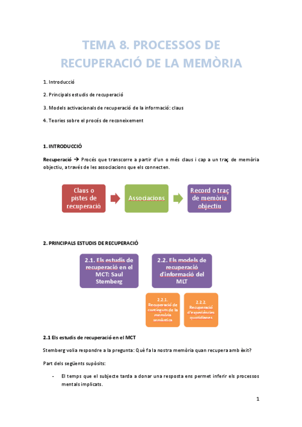He publicado nuevos apuntes de 2º Psicología de la Memoria: memoria