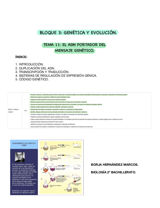 He publicado nuevos apuntes de Biología: T11 ADN PORTADOR DEL MENSAJE GENÉTICO