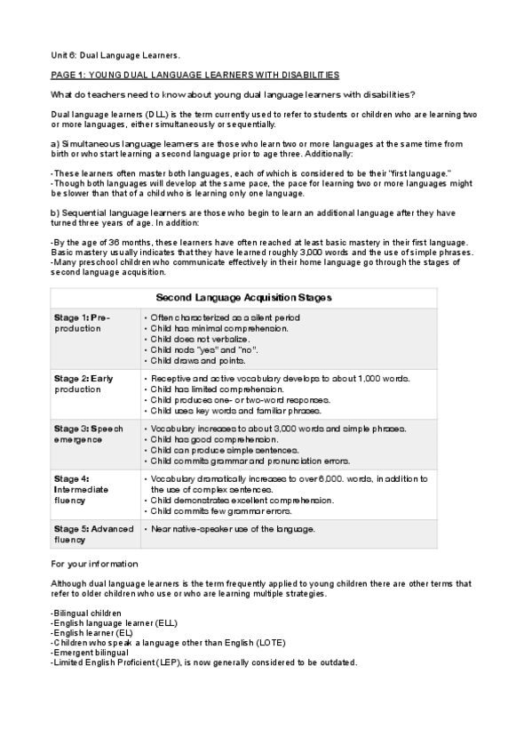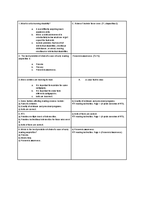 Learning Disabilities. Apuntes y Tests