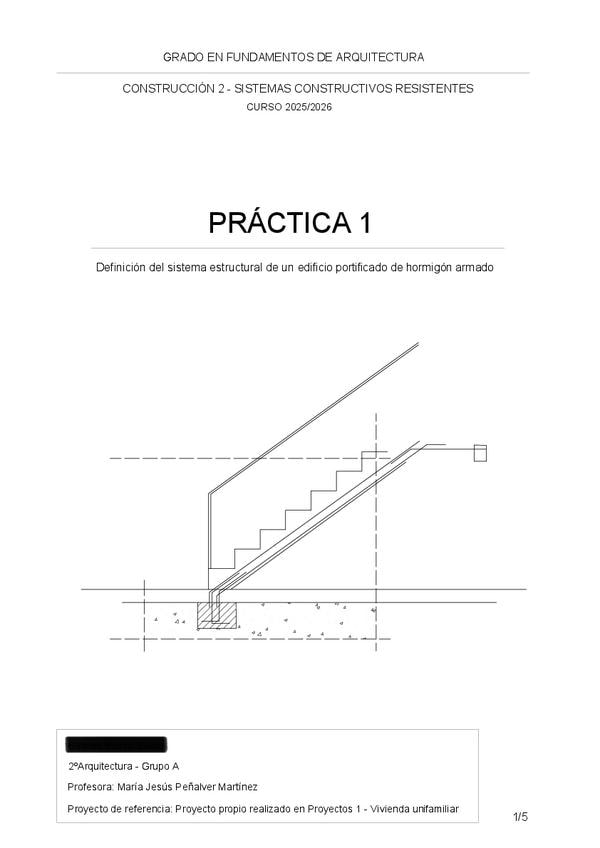 Práctica nº1 de Construcción 2 (Definición del sistema estructural de un edificio portificado de hormigón armado) resuelta.