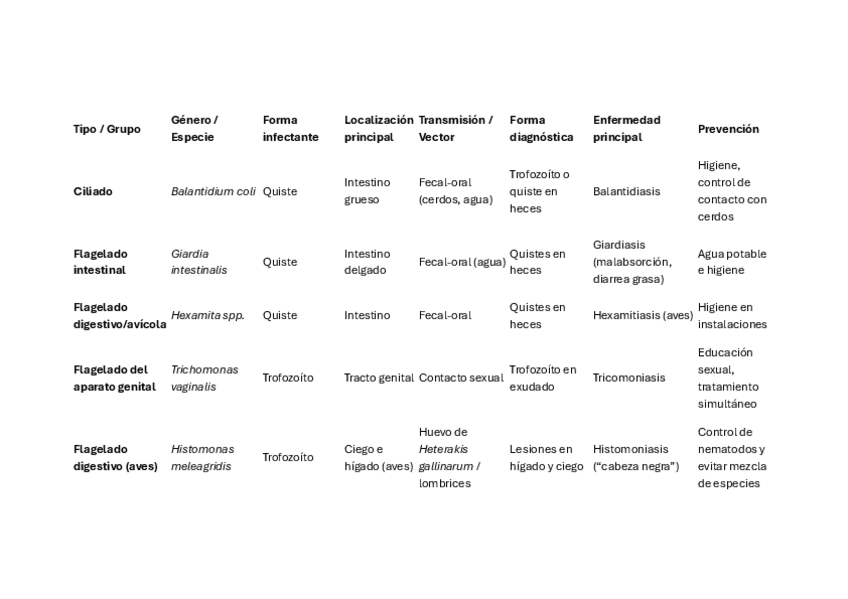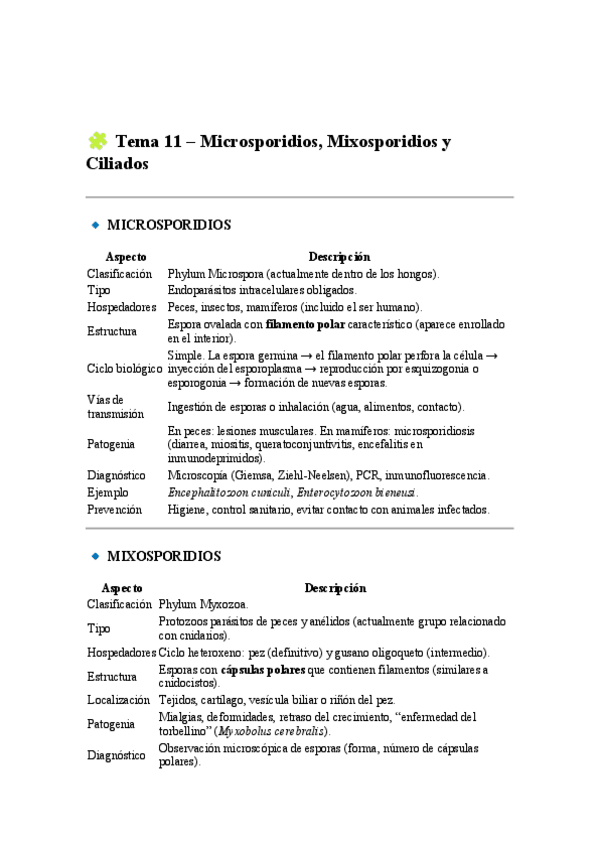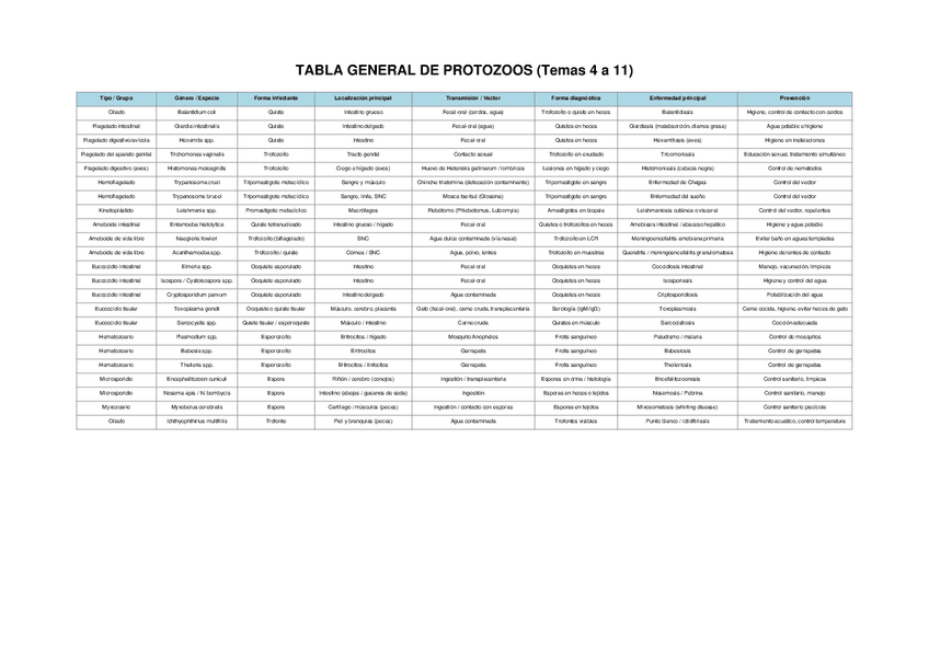 He publicado nuevos apuntes de 2º Parasitología: TablaGeneralProtozoosTemas4a11.pdf