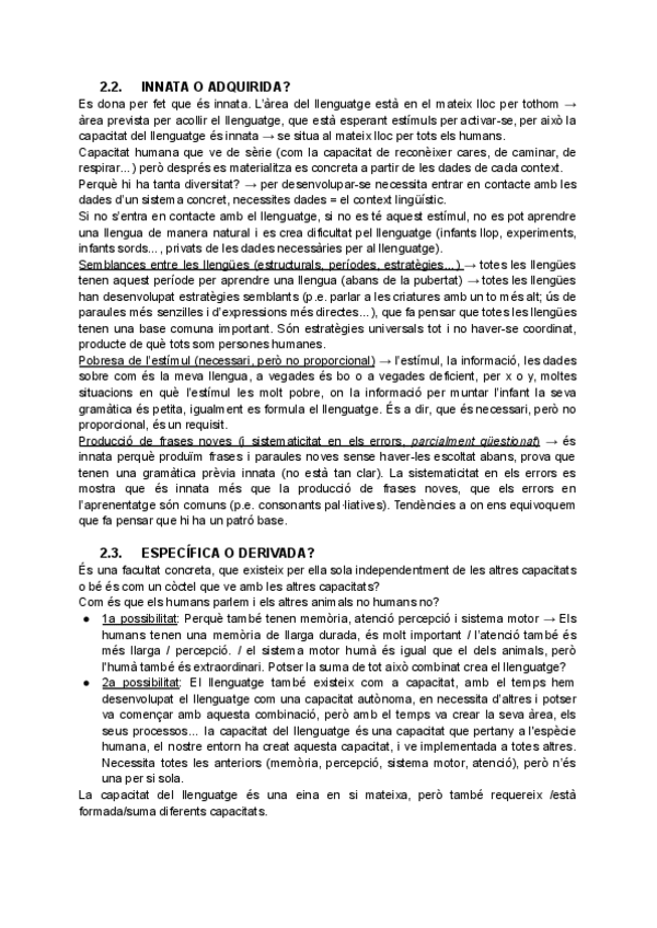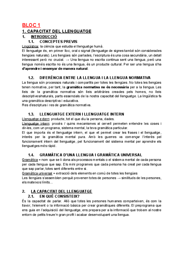 Capacitat del llenguatge, Universals lingüístics, Llenguatge de Signes, Neurolingüística,