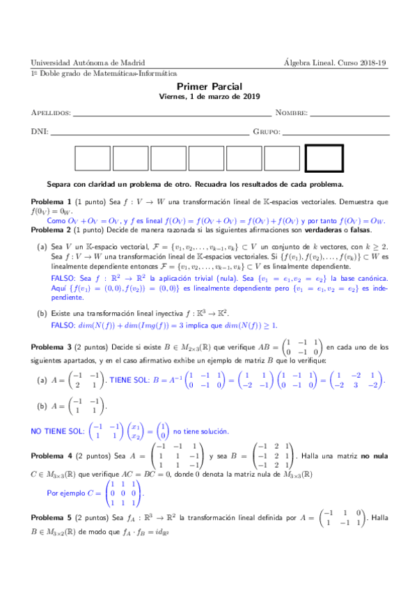 He publicado nuevos examenes de 1º Álgebra Lineal: P1Resuelto Marzo 2019.pdf