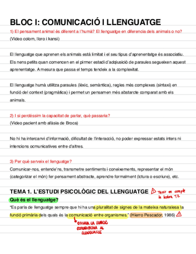 Apuntes de clase sobre el temario del segundo bloque con los ejercicios y lecturas