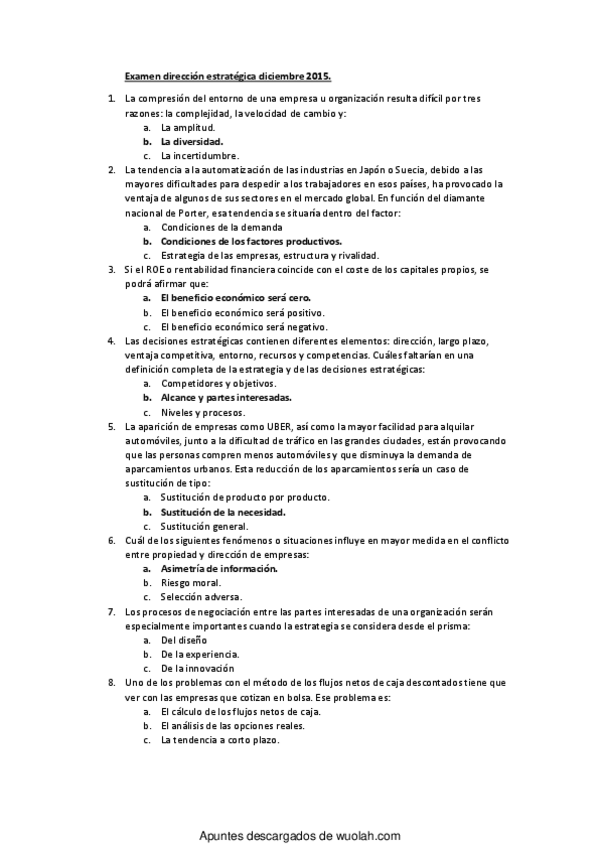 He publicado nuevos apuntes de 4º Dirección Estratégica: Test Examenes