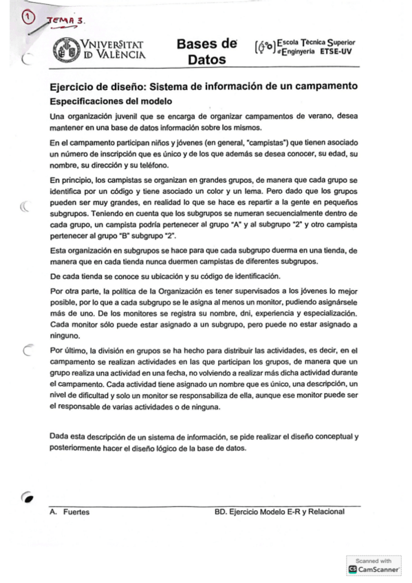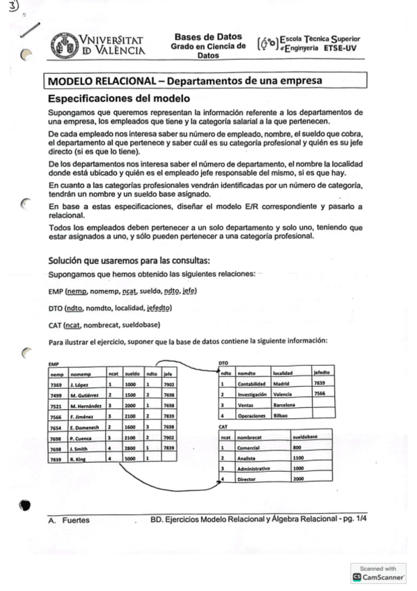 Ejercicio de Modelo E/R, Modelo Relacional y Algebra Relacional