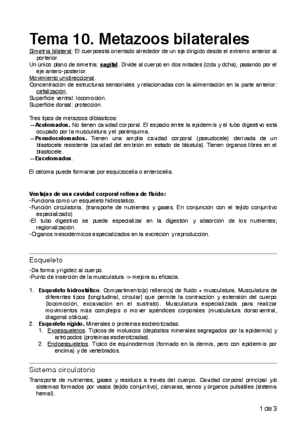 He publicado nuevos apuntes de 1º Zoología: Tema 10. Metazoos bilaterales.pdf