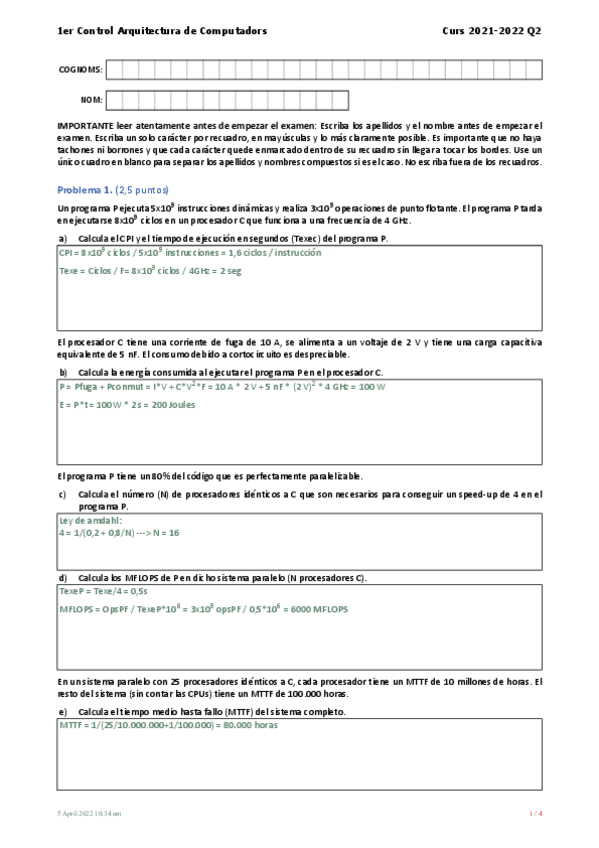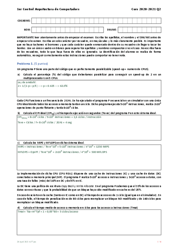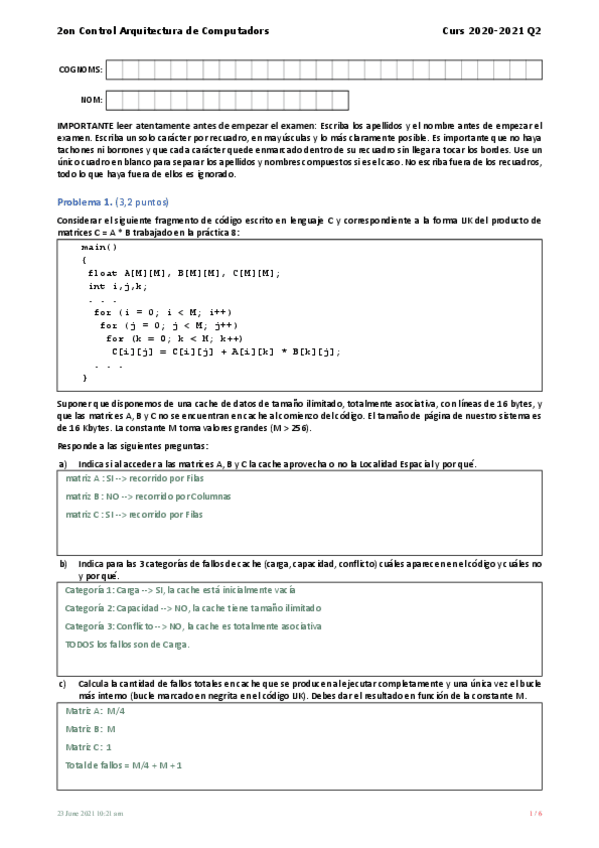 Soluciones de los últimos exámenes de AC.