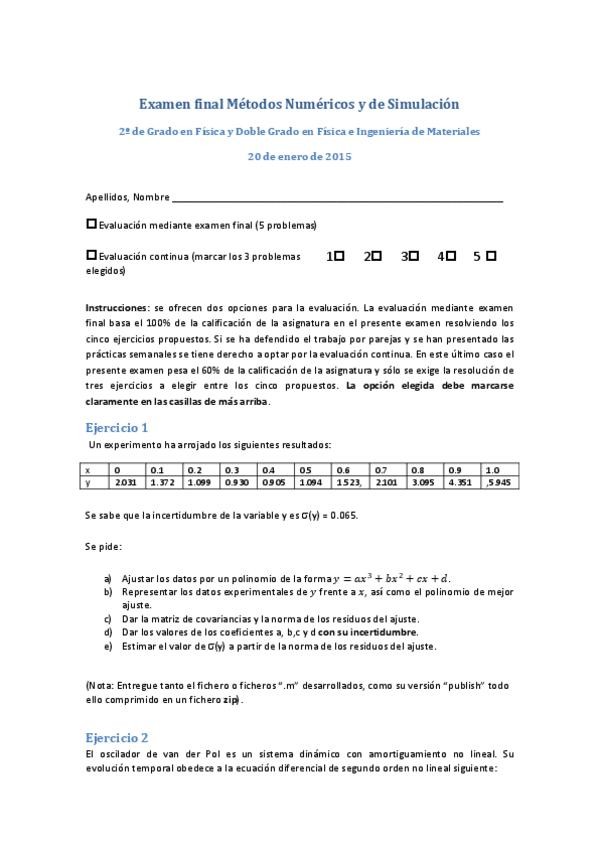 He publicado nuevos examenes de 2º Métodos Numéricos y de Simulación: Exámenes anteriores (2)