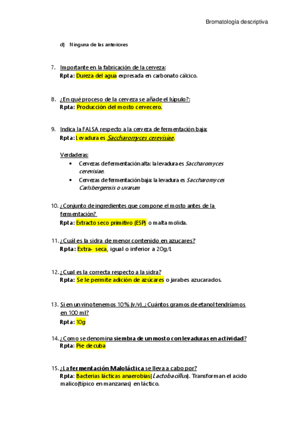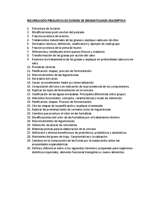 He publicado nuevos apuntes de 2º Bromatología Descriptiva: Exámen Bromatología descriptiva
