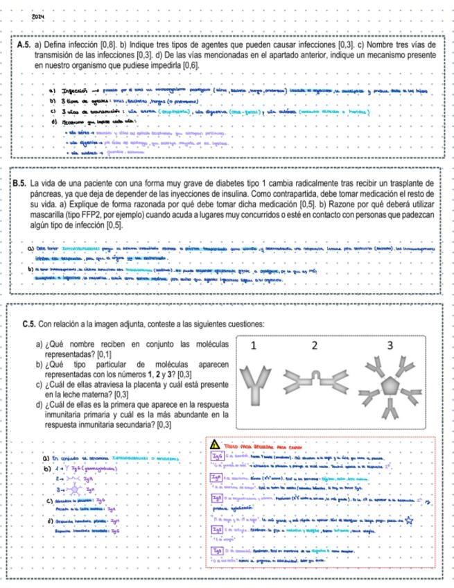 Todas las preguntas del 2024, de inmunología de selectividad de Andalucía resueltas según los criterios establecidos