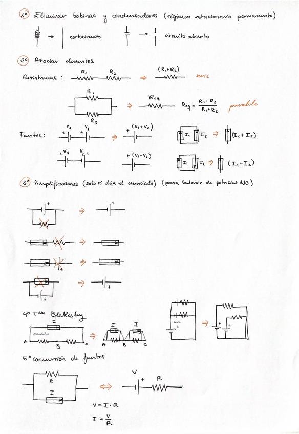 pasos a seguir y teoremas necesarios para hacer los ejercicios de corriente continua, una chuletilla para cuando empieces a pracicar ejercicios