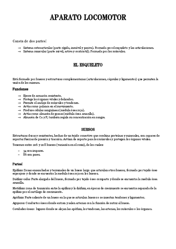 Tema 2 anatomia: Aparato locomotor (esqueleto, articulaciones, músculos y patologías)